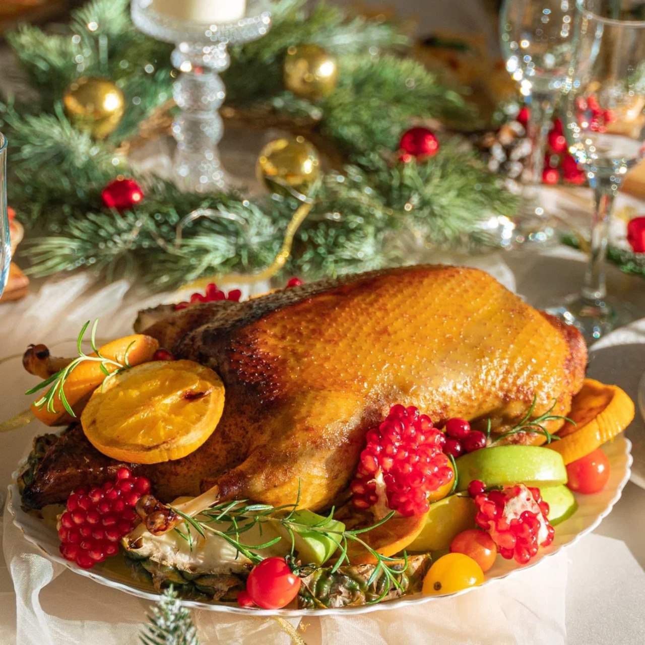 - Утка по-царски с апельсинами и декором из фруктов гриль